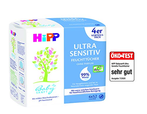 Hipp Vochtige Ultra Sensitive Babydoekjes,DA90001, Wit, 3 x 4 x 52 Stuks